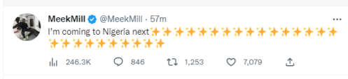 In a recent tweet shared on Twitter, Meek Mill expressed his interest in visiting Nigeria