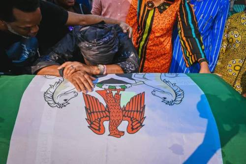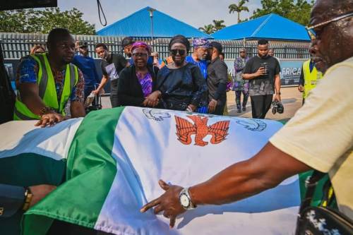 Upon arrival, the late Governor’s body was received by his wife, Betty Anyanwu-Akeredolu, along with his children and siblings, with Prof. Wole Akeredolu, his immediate younger brother, leading the reception.