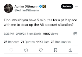 AGS NEWS – X is filled with claims suggesting that Elon Musk, the famed entrepreneur, may be using a secret alias, ‘Adrian Dittmann,’ to heap praise upon himself on the X platform.